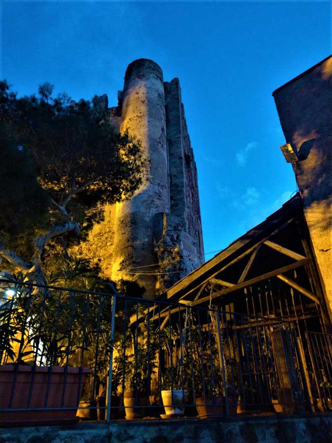 Brolo deriva da Brolium, cioè orto, frutteto o giardino fiorito. Il primo impianto urbanistico del Borgo, rimasto sempre allo stato feudale, risale all’XI secolo e la sua storia è legata alla munita fortezza la cui torre esisteva già in epoca normanna, menzionata in un privilegio del Gran Conte Ruggero del 1094 con la denominazione di “turris Voab” (etimologia araba dal significato di «Rocca marina»). In epoca sveva il Borgo assunse particolare importanza con la famiglia Lancia quando Federico II di Svevia sposò la figlia di Bonifacio Lancia nel 1246, Bianca, che gli diede tre figli, Costanza, Enzo e Manfredi. Quest’ultimo nacque proprio a Brolo, nel castello avito. Nel 1738 Girolamo III Lancia vendette tutti i possedimenti e la Baronia passò al marchese Ignazio Vincenzo Abate di Longarino. In questo periodo avviene l’espansione urbana di Brolo nella zona sottostante il Castello con la Chiesa Madre Maria SS. Annunziata del 1764 e con la costruzione lungo la strada regia di palazzetti ottocenteschi che definiscono il profilo urbano del Borgo. Il Castello con la Torre, sorta nel sec. XIII ad opera di Federico II di Svevia, fu residenza della moglie Bianca Lancia, confiscato nel 1392 a causa della ribellione dei Lancia e passato agli Aragona. All’interno della Torre sono da visitare il Museo della pena e della tortura, dove si possono osservare gli strumenti di tortura, morte e scherno e il Museo delle fortificazioni costiere, dedicato alle torri di avvistamento.
