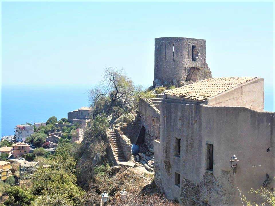 Edificato verso la seconda metà del ‘400 dalla famiglia Spadafora, fu gravemente danneggiato dal terremoto del 28 dicembre 1908. Venne restaurato nel 1920 e nel 1958-60 dai discendenti Samonà che ne fecero la loro residenza estiva fino al 1969. A pianta quadrata con gli spigoli rinforzati da torrioni cilindrici scarpati alla base e dotato di Cappella, sorge in cima ad una collina che domina il sottostante Borgo.