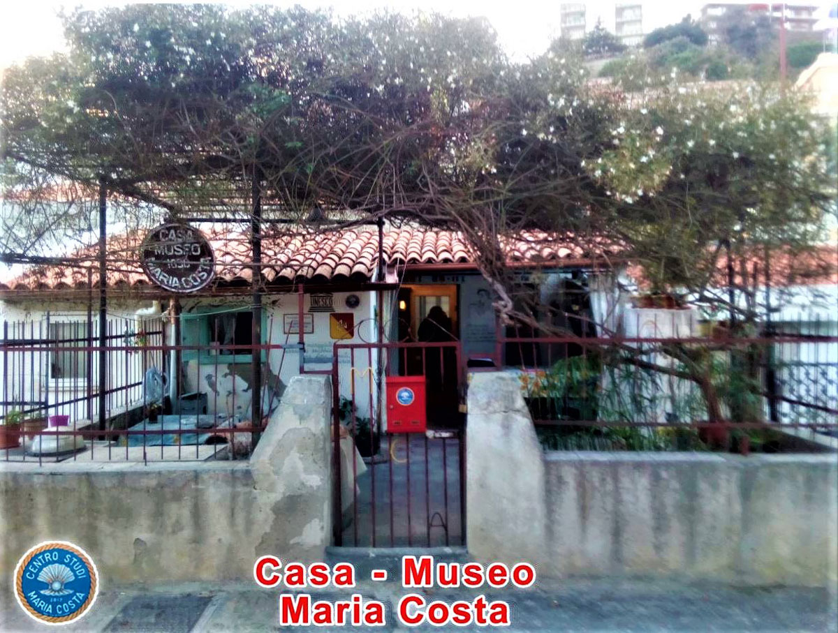 Sorge in uno dei luoghi più caratteristici e suggestivi di Messina, il Borgo Marinaro delle “Case Basse” (“‘i casi basci”) nel Villaggio “Paradiso” a due passi dal mare, quel mare che Maria Costa tanto amò e cantò. La casa dove visse e scrisse le sue poesie è una piccola dimora con cortiletto-giardino e pozzo antistante, nell’agglomerato di pescatori di aspetto ottocentesco e dove prima del terremoto del 1908 esisteva anche uno “Stabilimento di mattonelle in cemento” (la cui torre-ciminiera a pianta quadrata era rimasta in piedi fino agli anni 30). Un Borgo ameno di cui si legge, nella guida “Messina e dintorni” stampata a cura del Municipio nel 1902 “Oltrepassata la Contrada detta del “Paradiso” per l’amenità del borgo, e dove nel sec. XVII la famiglia Marquett possedeva un museo di grandissima importanza […]”. La casa, che conserva gli arredi originari, espone foto, dipinti e disegni che ritraggono la poetessa, oggetti, cimeli, targhe e premi, attestati, locandine. Custoditi sono anche i manoscritti originali e i suoi libri di poesie. Il pittore Pippo Crea, negli anni, ha realizzato i murales iperrealisti che decorano le pareti esterne della casa.