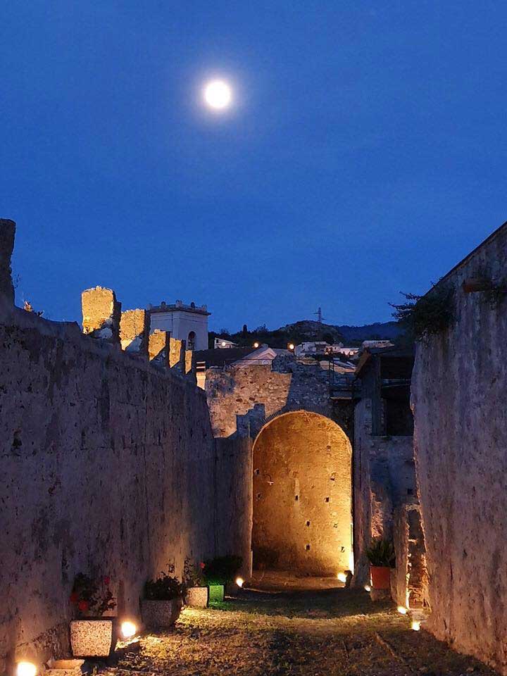Fu fatto edificare nel 1590 dal conte Stefano Cottone, importante mercante e banchiere, come riportato nella frase dell’epigrafe che sormonta il portale del bastione sud-est: “[…] a difesa dalle incursioni da terra e dal mare, Stefano Cottone, IV signore di Bauso, eresse le mura dalle fondamenta […] nel 1590 […]”. Qui i Vicerè di Sicilia venivano accolti e si riposavano durante i loro viaggi da Palermo a Messina. Nel secolo XVII i conti Cottone furono investiti del titolo di principe e con l’ultimo principe di Castel Nuovo com’era definito il castello-palazzo, Carlo Cottone, si estinse la famiglia e nel 1819 tutto il complesso, insieme alla Terra di Bauso e al titolo di “Principe di Castelnuovo”, venne acquistato per 9.000 onze dall’ex giudice della Gran Corte Civile di Palermo, Domenico Marcello Pettini. Nel 1926 il castello fu venduto al notaio Pietro Saja che, dopo avervi fatto eseguire alcuni lavori di restauro, ne fece dono personale a Benito Mussolini. Venne, quindi, destinato a sede della Gioventù Italiana Littorio e per tanti anni si trascinò un contenzioso fra lo Stato e gli eredi Saja che ne contestavano la legittima proprietà. Oggi è di proprietà della Regione Siciliana.