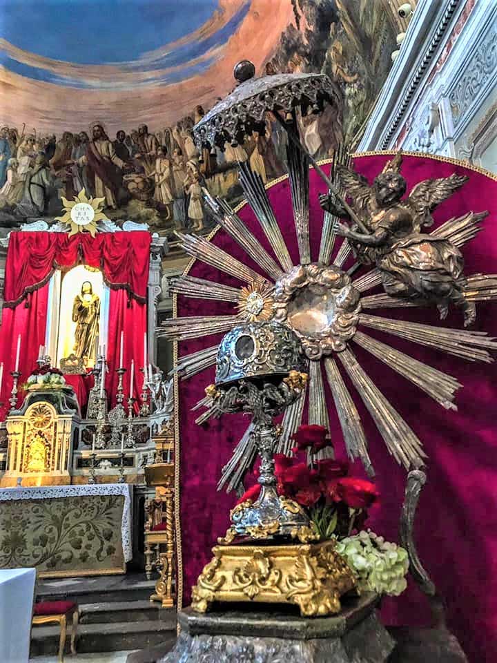 Fondata da San Francesco di Paola durante la sua permanenza a Milazzo tra il 1464 e il 1467, sorse su un precedente edificio sacro dedicato al culto di Gesù e Maria, cui seguì la costruzione dell’adiacente Convento dell’Ordine dei Minimi. Nel 1579 tutto il colle di San Biagio venne ceduto all’Ordine e agli inizi del sec. XVII la chiesa fu notevolmente modificata e ingrandita con l’inversione dell’ingresso, non più ad ovest ma ad est, davanti al mare. Tali lavori, probabilmente, avvennero in seguito ai danni subiti dalle strutture nei terremoti del 25 agosto 1613 e del 27 marzo 1638. Dopo l’altro sisma del 1693, conosciuto come “terremoto del Val di Noto”, il tempio assunse i caratteri architettonici attuali che si rifanno a quella corrente di gusto che prende il nome di “barocco siciliano”. Chiuso provvisoriamente dopo i danni e gli atti vandalici subiti nella battaglia fra garibaldini e borbonici del 20 luglio 1860, subì altri danni in un incendio il 10 maggio 1908 e quelli del terremoto del 28 dicembre dello stesso anno. Il Convento annesso ospitò illustri personaggi quali il viceré di Sicilia Ettore Pignatelli nel sec. XVI e il principe Emanuele Filiberto di Savoia nel 1622.
