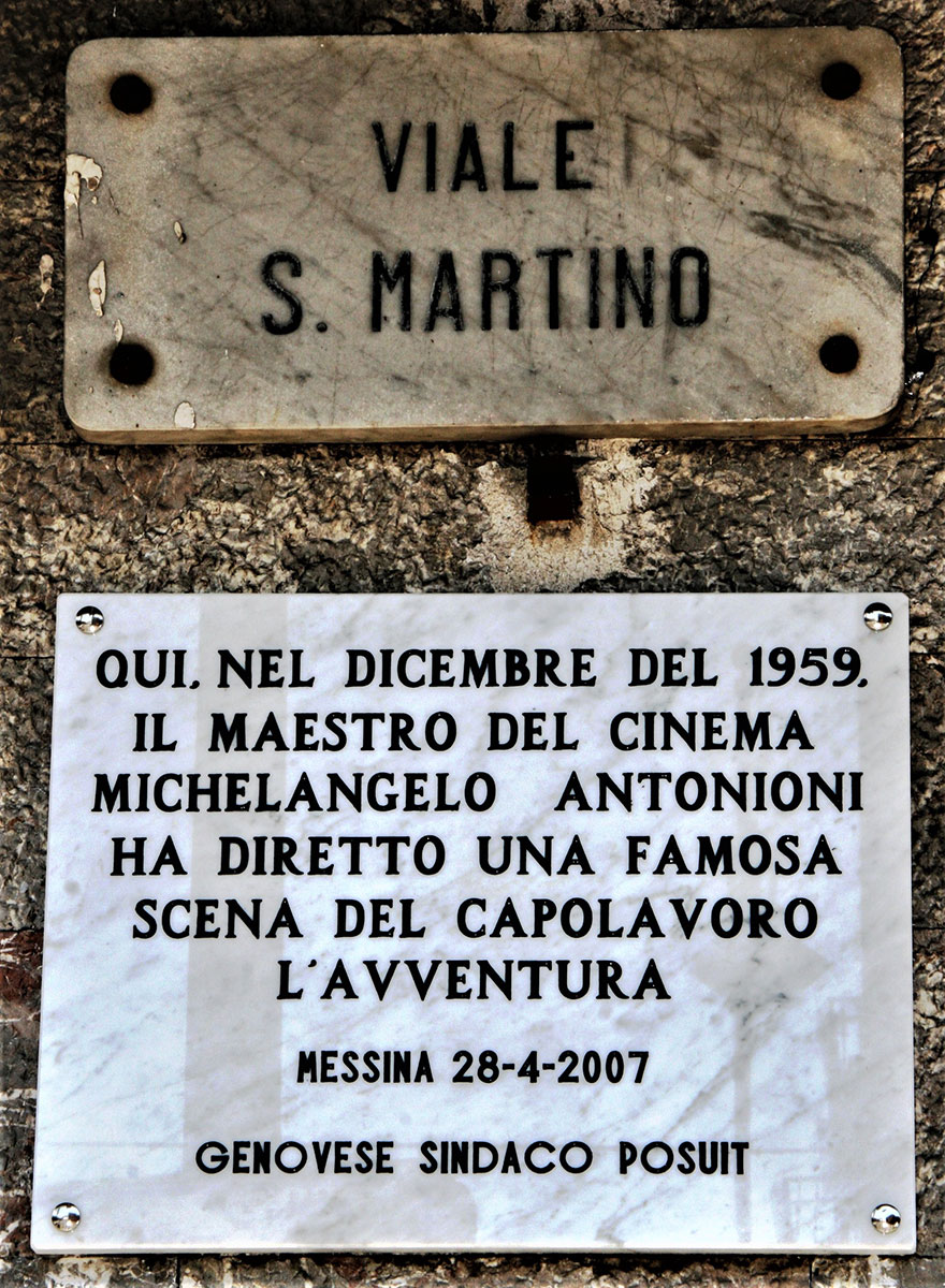 Il 9 dicembre 1959 Michelangelo Antonioni girò una scena a Messina nel film-cult “L’avventura” con Gabriele Ferzetti, Monica Vitti e Lea Massari. La scena si svolse nel bar “Grotta Orione” di Viale San Martino con la procace Dorothy De Poliolo. L’avventura” fu il primo film importante per Monica Vitti, legata a Messina per avervi vissuto fino a 8 anni.