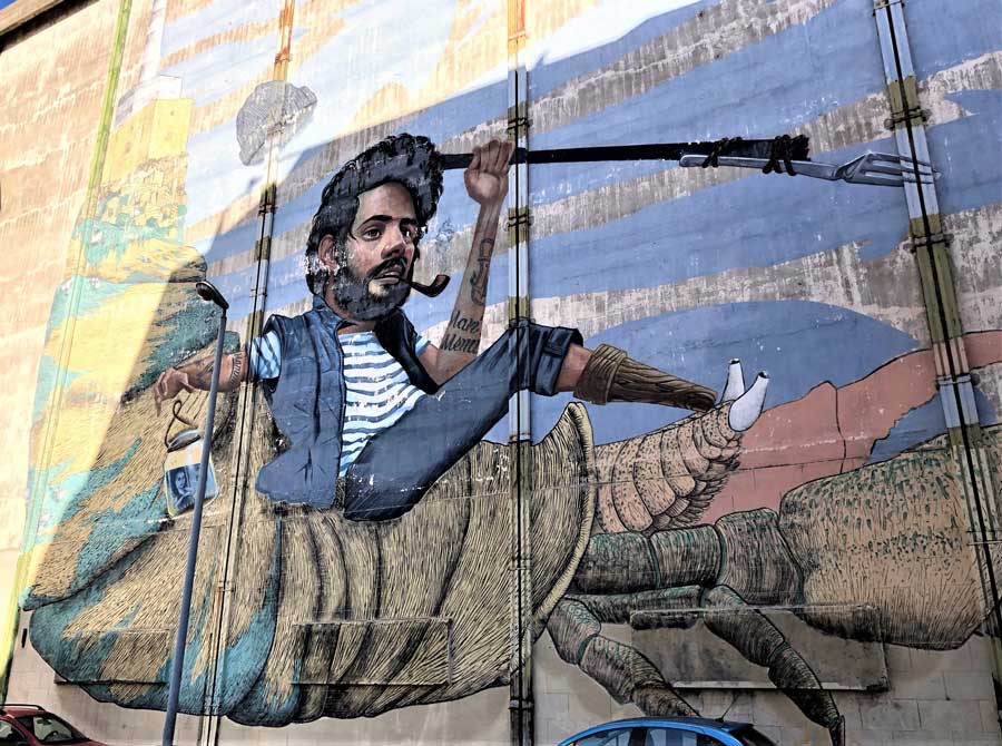 Nell’ambito del progetto “Distrart” del Comune di Messina, un evento di rigenerazione urbana tramite il linguaggio della Street Art, nel 2015 sono state realizzate 5 grandi pitture murali su alcune facciate dei silos ex granai ed ex magazzini generali nella zona di via Campo delle Vettovaglie. SeaCreative, sul prospetto degli ex Magazzini Generali, ha dipinto la figura di “Lillo il marinaio”, nome messinese perché diminutivo di Letterio, che volge le spalle al mare e dopo la sua fatica della giornata torna casa con un pesce sottobraccio. Sulla facciata dei silos ex granai vicino al parcheggio Cavallotti giganteggia “Metamorfosi”, l’opera degli artisti Anc & Poki dove Messina è rappresentata come un enorme paguro con la lanterna cinquecentesca del Montorsoli in sommità. Con l’opera “Mediterranea” Julieta.Xlf, giovane artista spagnola, mette in primo piano in uno sfondo di maioliche policrome una sirenetta azzurra che piange sangue, perché il mare è pieno di sangue. Luca Zamoc raffigura “Giasone e il dragone”, il mito degli Argonauti che passarono dallo Stretto. Infine, NemO’S, propone il tema drammatico delle morti dei migranti in mare, quattro corpi nudi appesi come panni stesi ad asciugare.