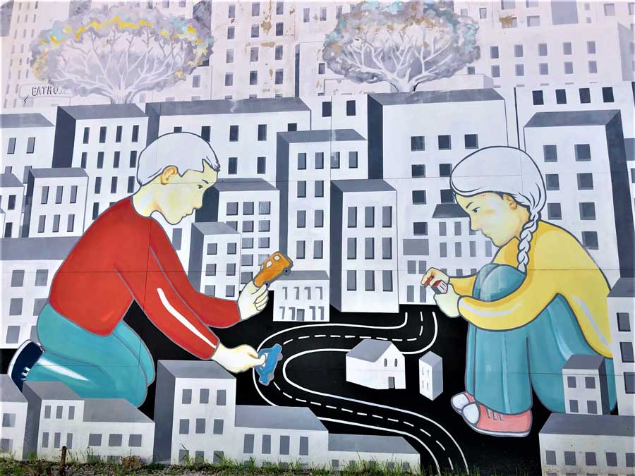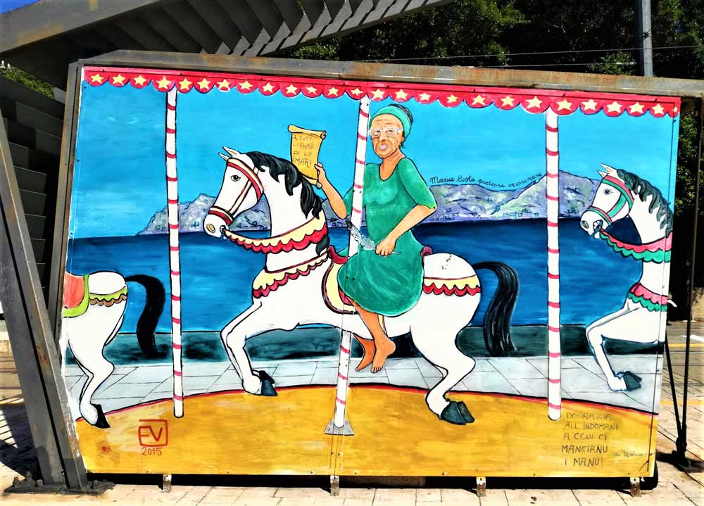 Da non confondere con i “graffiti” vincolati all’uso delle bombolette spray, la “Street Art” che in Italia prende anche il nome di “arte urbana” rappresenta, in sostanza, una sorta di riappropriazione di spazi urbani anche pubblici, spesso per sottrarli al degrado conferendo loro nuova dignità col linguaggio universale dell’arte. Corrente artistica diffusissima ormai in Italia, a Messina ha avuto il suo battesimo quando un nutrito gruppo di artisti ha decorato le 53 pensiline delle fermate della linea tranviaria con soggetti in massima parte legati alla storia della città ma, anche, a temi di attualità: così, fra gli altri, Valeria Cariglia ha reso omaggio alla poetessa messinese Maria Costa; Stellario Di Blasi ha rievocato il mito di Scilla e Cariddi e Roberto Miroddi quello di Arione; Manuela Caruso (MaCa) la storia d’amore dei mitici progenitori di Messina, Mata e Grifone; Maria Rando il mitico Colapesce e Daniele Battaglia ha evidenziato il fenomeno dell’immigrazione. In una parete-pannello realizzata alla fine della scalinata Mons. Bruno alle spalle del Palacultura, Manuela Caruso ha realizzato un gigantesco murales dal titolo “visioni, suggestioni, utopie e distopie del prossimo futuro”.