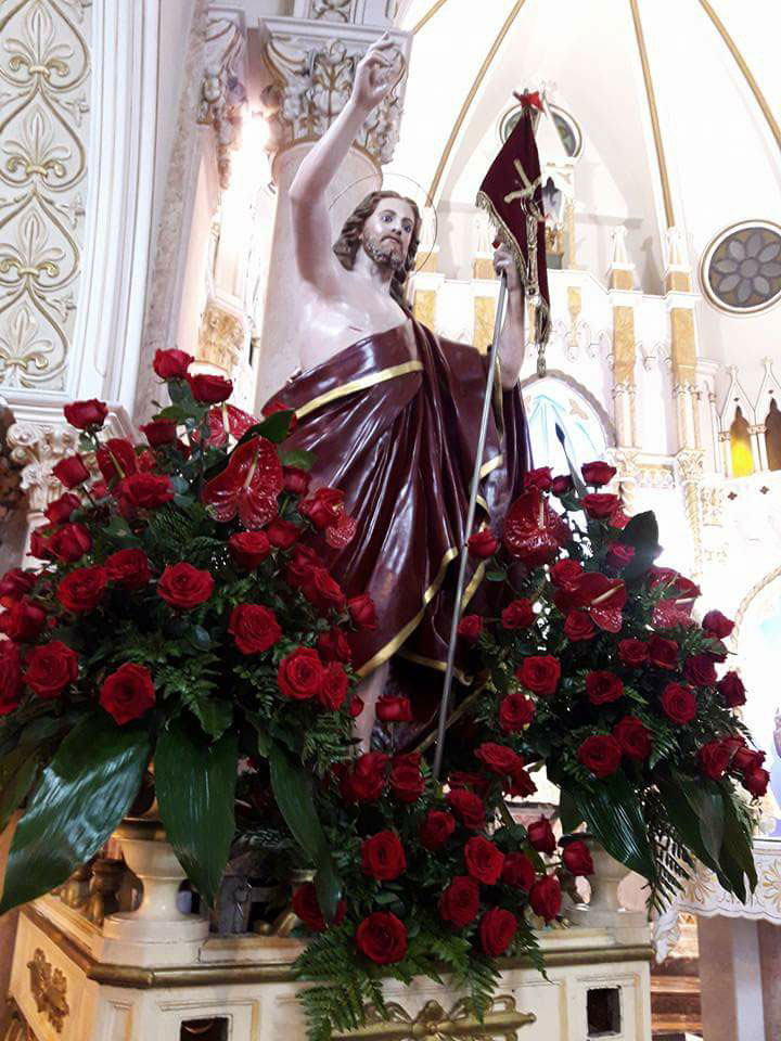 I Mercedari dotarono la chiesa del Rione Portalegni anche di una statua della Madonna la quale, già nel secolo XVII, si portava in processione per la città la mattina di Pasqua e la si faceva incontrare in piazza Duomo con la statua del Figlio Risorto. Scrive Placido Samperi nella sua “Iconologia” del 1644: “Si vede parimenti nella cappella sfondata dalla parte destra una bellissima statua della Madonna della Mercè, la quale si porta in solenne processione dalla Confraternita, da qualche tempo in qua già riconciliata, nella mattina della Pasca di Resurrettione, facendosi il trionfale incontro col Signore Risuscitato, a suon di trombe e di musiche, col festivo rimbombo d’Archibugi, di mortaretti e di Artegliarie nell’ampio piano del Duomo”. Un tempo, di fronte alla chiesa, si assiepavano i banconi dei venditori di “giaurrina longa menza canna” (dolce di origine araba composto da impasto di farina, miele ed essenze aromatiche). Il clou della festa degli “Spampanati”, allora come oggi, è costituito dalla processione delle statue policrome di Maria e Gesù Risorto che parte dalla chiesa alle 8 di mattina, curata egregiamente dalla Confraternita di “Maria Santissima della Mercede in S. Valentino”.