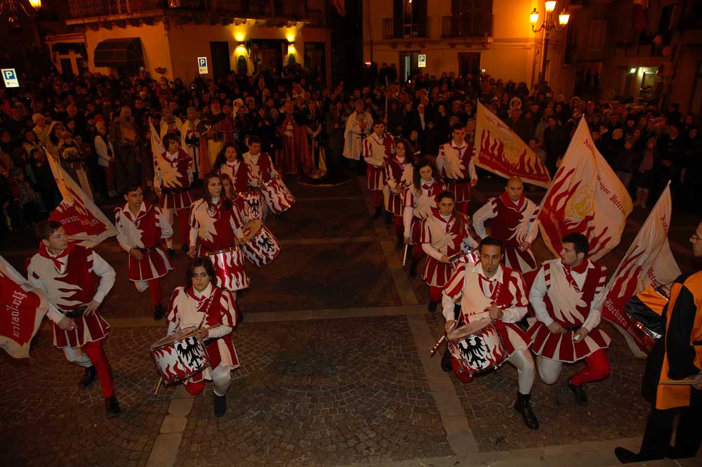 La liberazione dagli arabi di Monforte San Giorgio ad opera dei Normanni viene rievocata ogni anno con la Tammurinata o Katàbba, termine che deriverebbe dal greco “Katabasis“, discesa, oppure dall’arabo “Qataba“, adunata. Si tratta del suono congiunto di un tamburo e di campane scandito da diversi momenti: all’inizio cadenzato ad imitare il passo del cavallo cavalcato da un messaggero che annunzia l’arrivo dei Normanni, prosegue con l’imitazione del passo del cammello del Gran Conte Ruggero per poi aumentare parossisticamente il ritmo a riprodurre il galoppo dei cavalli coi soldati per la battaglia con i musulmani. Il suono, quindi, diminuisce di ritmo e intensità a sottolineare il terrore, la morte, il silenzio. Per aumentare ancora quando gli infedeli fuggono tra la gioia e la festa per la completa liberazione del Borgo. Dal 17 gennaio e fino al 5 febbraio, giorno dedicato a Sant’Agata compatrona di Monforte San Giorgio, due suonatori di tamburo e campane per due volte al giorno e per oltre 20 minuti, alle prime luci dell’alba e dopo il tramonto, eseguono questo eccezionale repertorio musicale dalla torre campanaria della chiesa di S. Agata che non ha eguali al mondo.
