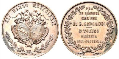 Giuseppe La Farina venne sepolto a Torino fra le tombe di Vincenzo Gioberti e Guglielmo Pepe. Il 22 marzo 1872, le sue spoglie restituite dalla città di Torino, furono trasportate a Messina dove riposano nel Gran Camposanto, nel Famedio degli uomini illustri in un monumento realizzato da Gregorio Zappalà.