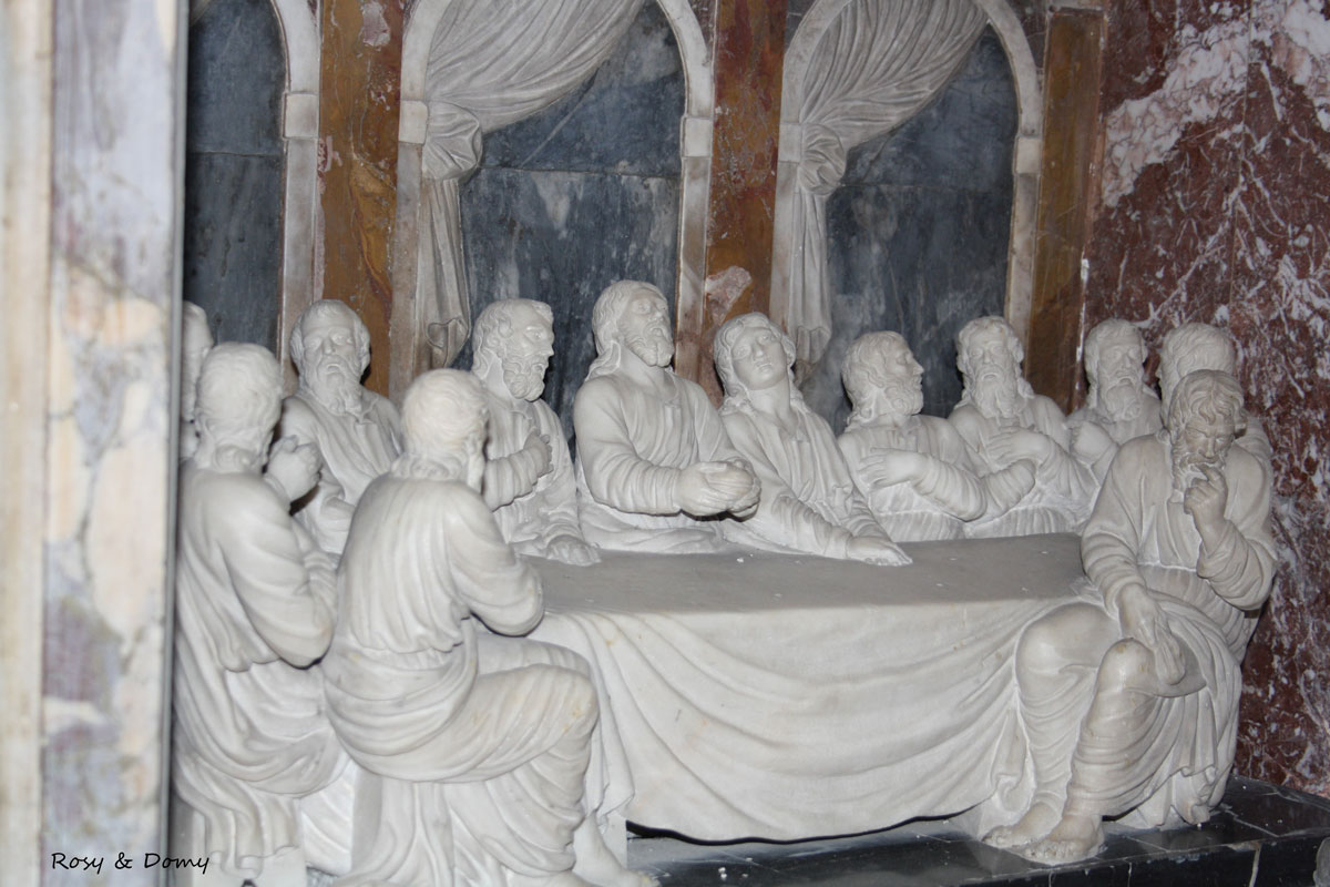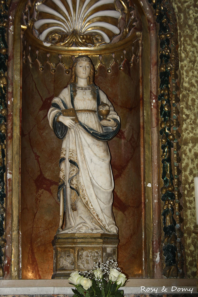 Sono da ammirare, fra le tante, la tavola del "Martirio di San Sebastiano" di Giuseppe Salerno (Gangi, 1570-1630), soprannominato lo "Zoppo di Gangi"; la statua in alabastro roseo dell'"Ecce Homo" attribuita al palermitano Ignazio Marabitti (1771), preziosa scultura dal delicato drappeggio su alto piedistallo in agata; la tavola di "San Marco" di Deodato Guinaccia (1581); la pala d’altare su tela dei "Santi Pietro e Paolo Apostoli" attribuita al messinese Alonzo Rodriguez (1578-1648), seguace del Caravaggio; l'"Immacolata", dipinto realizzato da Filippo Jannnelli nel 1676; la statua di Santa Lucia (fine XV secolo) attribuibile al dalmata Francesco Laurana; il bassorilievo dell'Ultima Cena in unico blocco marmoreo attribuito al palermitano Valerio Villareale (1773-1854), di chiara ispirazione leonardesco, considerato il Canova siciliano; un “Crocifisso" ligneo del 1665. Una cancellata delimita il vano dove è ubicato il Fonte battesimale coperto da custodia lignea secentesca, il fusto ornato da quattro torsi alati e vasca ottagonale con formelle, del 1484, opera di Gabriele de Baptista, autore, anche, dell’acquasantiera (1485).