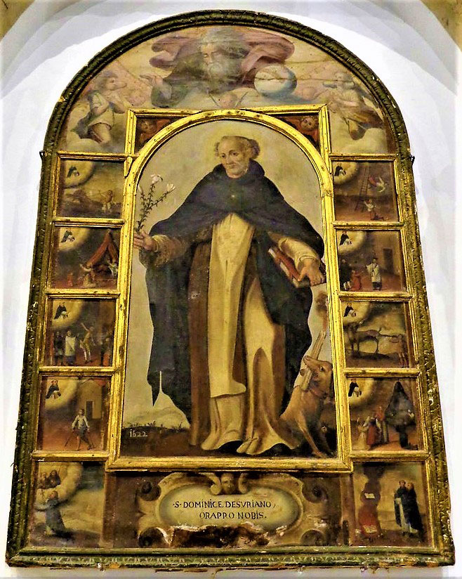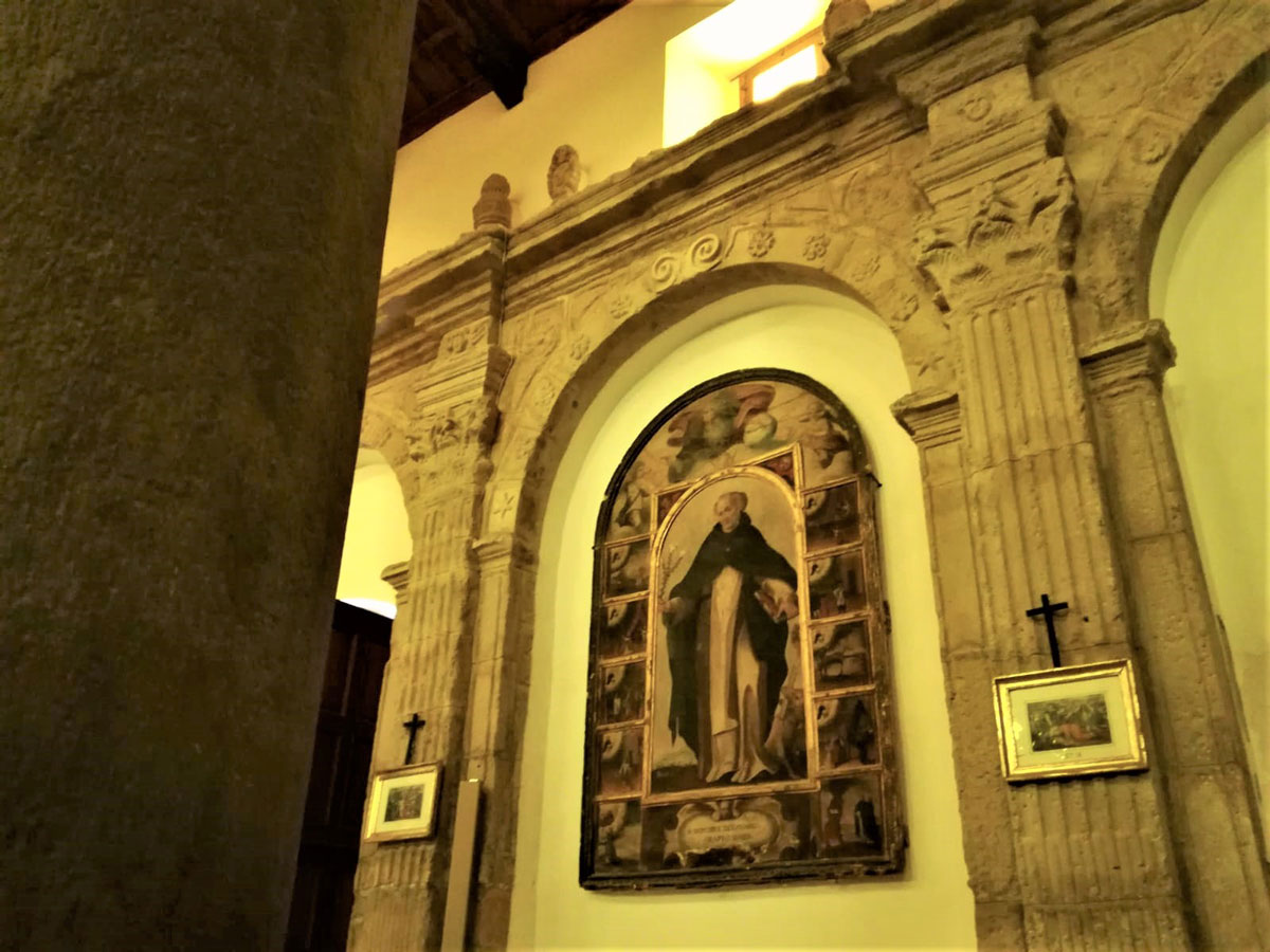 Custodisce pregevoli e importanti opere d’arte fra le quali i dipinti le Anime Purganti, opera attribuita a Filippo Jannelli del 1660 circa; la tela raffigurante San Domenico ispirato all'evento miracoloso avvenuto a Soriano Calabro, con episodi della vita e il Padre Eterno in alto, di autore ignoto (1622); la Dormitio Virginis (Morte della Vergine), tavola dei primi decenni del XVI secolo, opera d'artista di cultura bizantineggiante; il Polittico con la Natività tra San Francesco d’Assisi e San Giovanni Battista nel registro principale, l'Annunciazione nei due tondi, il Padre Eterno nella lunetta e l'Apostolato nella predella, di Giovanni Filippo Criscuolo e bottega (1550). Fra le sculture, la statua di San Giacomo Maggiore è attribuita al carrarese Andrea Calamech (sec. XVI); quella di San Pietro del 1586 è opera del manierista raccuiese Rinaldo Bonanno; Santa Maria di Gesù (1500-1501) e Santa Caterina d’Alessandria (1534), sono opere di Antonello Gagini. La Cappella delle Sante Reliquie (sec. XVIII) contiene un Crocifisso ligneo della stessa epoca e una vetrina con le reliquie dei Santi. Pregevole il coro ligneo di Giorgio Veneziano (sec. XVI).