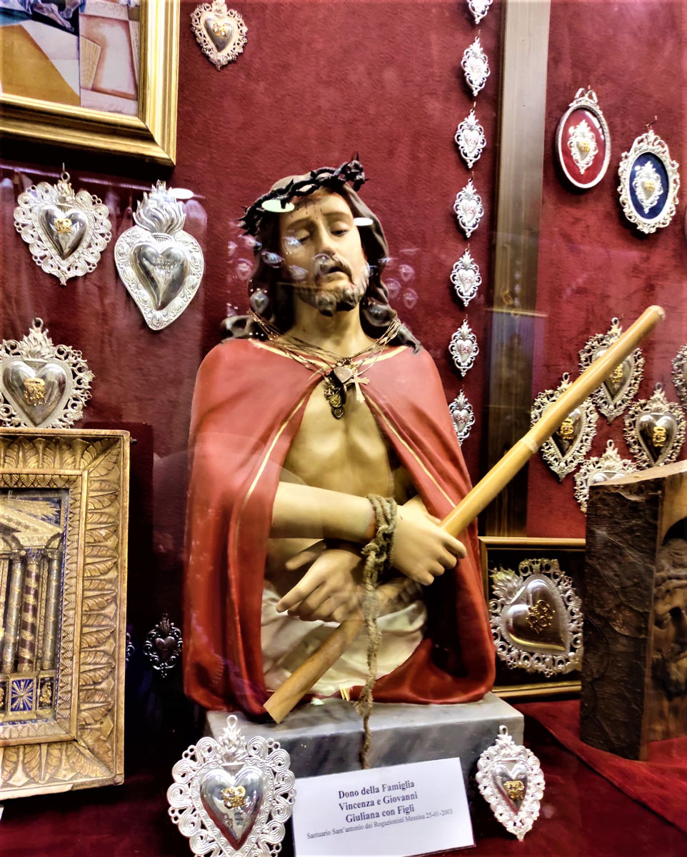 Articolato in due sale, il “Tesoro” del Santuario è ubicato sulla destra dell’ingresso alla cripta di S. Annibale. Nella prima sono esposti paramenti sacerdotali e oggetti relativi al Santo e nella seconda, dedicata a Sant’Antonio di Padova che col Sacro Cuore di Gesù è contitolare della Basilica Santuario, sono custoditi oggetti devozionali. Fra questi, un calice in argento cesellato a mano offerto dalla famiglia Strocio il 24 luglio 1923 e un prezioso reliquiario della Santa Croce, anch’esso in argento cesellato a mano con l’iscrizione: “A.D. Placidus Manna pro eius devot. Fecit 1718”. Si conservano, inoltre, le due casule donate dal Pontefice San Giovanni Paolo II alla Congregazione dei Rogazionisti, da lui indossate in occasione del Rito di Beatificazione (San Pietro in Vaticano, 7 ottobre 1990) e di Canonizzazione (S. Pietro in Vaticano, 16 maggio 2004) di Padre Annibale. E ancora, fra i tanti reperti, una collezione di “santini” (immaginette sacre), ex-voto in argento, reliquiari, ostensori, candelieri, una tovaglia a mantovana in catena d’oro per l’altare di Sant’Antonio e lo scapolare festivo della statua di S. Antonio con cuciti ex voto in oro.