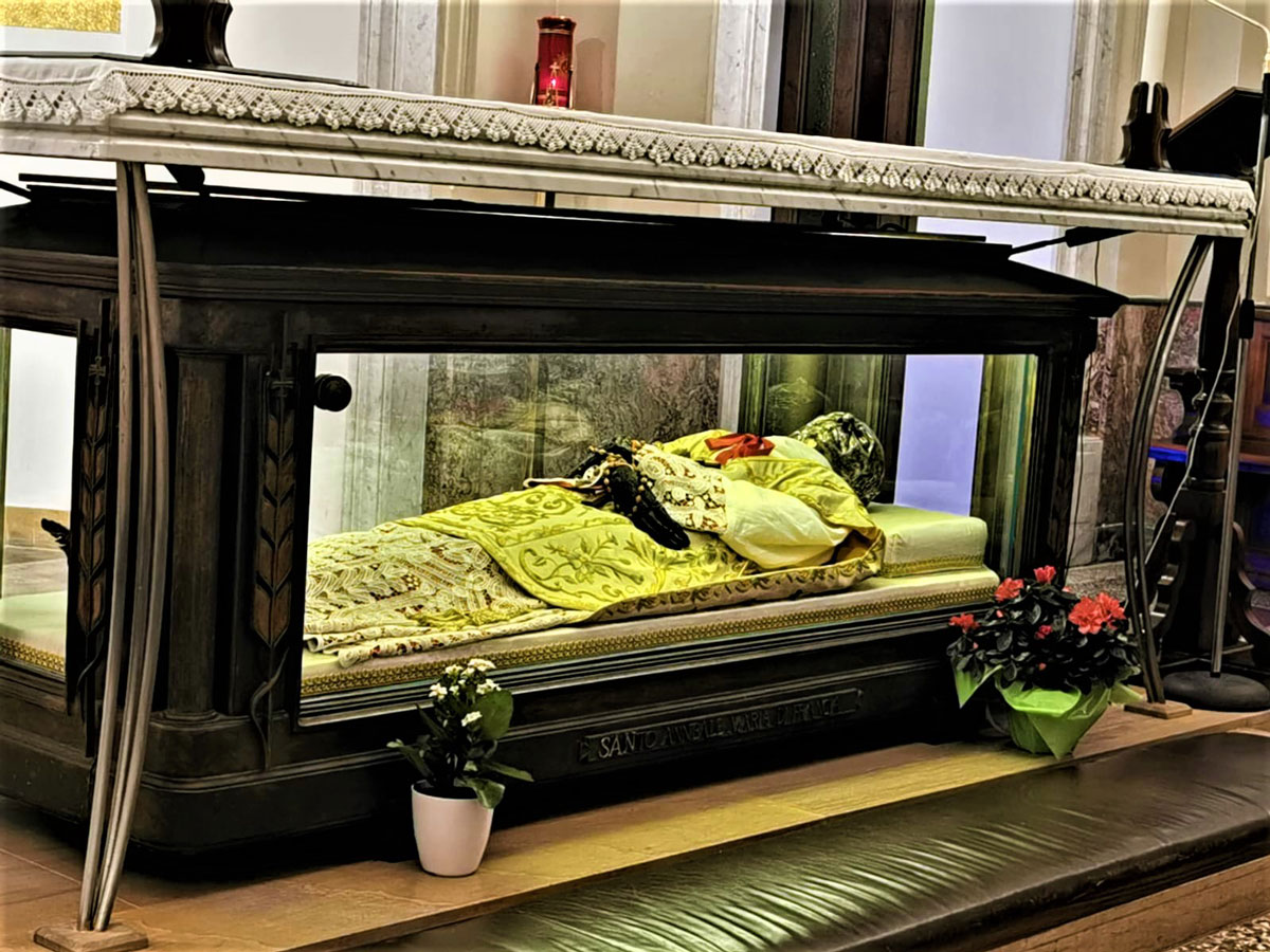 Annibale Maria di Francia nacque a Messina il 5 luglio 1851. A 7 anni, nel collegio “San Nicolò” dei Padri Cistercensi, si distinse per un atto di carità nei confronti di un povero che veniva dileggiato dai compagni. A 17 anni, nel 1868, ebbe la vocazione del “Rogate” nella chiesa di S. Giovanni di Malta, intuì, cioè, l’importanza della preghiera per le vocazioni. Divenuto diacono nella chiesa del Monastero di Montevergine il 26 maggio 1877 e consacrato sacerdote il 16 marzo 1878, da un incontro con il mendicante cieco Francesco Zancone ha inizio il suo apostolato di carità e aiuto verso i poveri nel misero e degradato “Quartiere Avignone” della città. Nel 1882 vi fonda l’Orfanotrofio femminile e, quello maschile, l’anno successivo. Nel 1887 istituisce la Congregazione delle “Figlie del Divino Zelo” e nel 1897 quello dei “Rogazionisti del Cuore di Gesù”. Muore l’1 giugno 1927 nel Santuario della Madonna della Guardia a Faro Superiore. Dichiarato beato nel 1990 da papa Giovanni Paolo II, è stato santificato dallo stesso pontefice nel 2004. La Basilica Santuario di S. Antonio custodiva anche le sue spoglie mortali, oggi traslate in una cripta appositamente realizzata, in adiacenza al tempio.