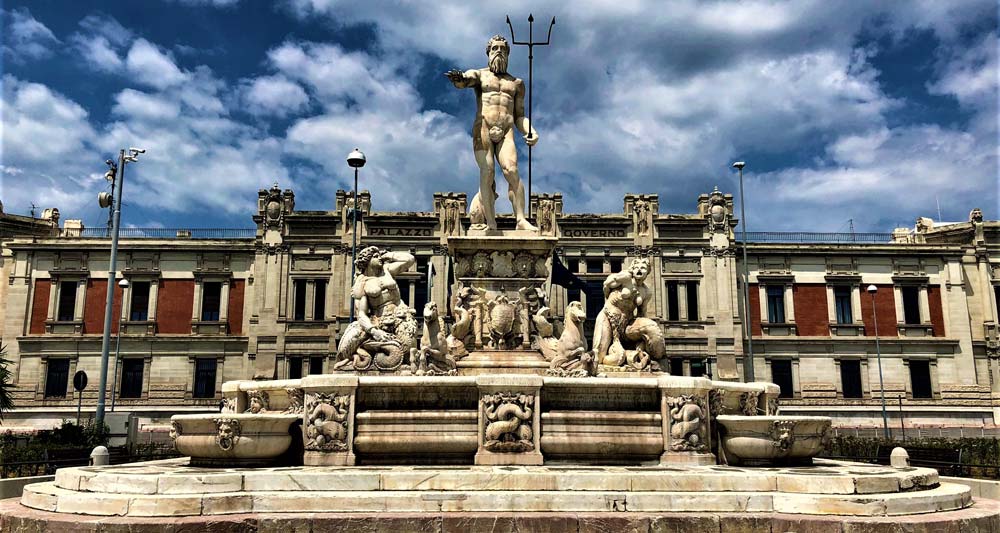 Realizzata nel 1557 da Giovan Angelo Montorsoli, venne concepita come una mitica allegoria delle pericolose acque dello Stretto che nei favolosi mostri Scilla e Cariddi trovano la loro personificazione. La statua di Scilla, danneggiata dai colpi di cannone durante la rivolta antiborbonica del 1848, è stata sostituita da una copia eseguita da Letterio Subba nel 1858 e l’originale è custodito nel Museo Regionale, così come il Nettuno, la cui copia è una riproduzione fedele dovuta a Gregorio Zappalà, che la realizzò nel 1856.