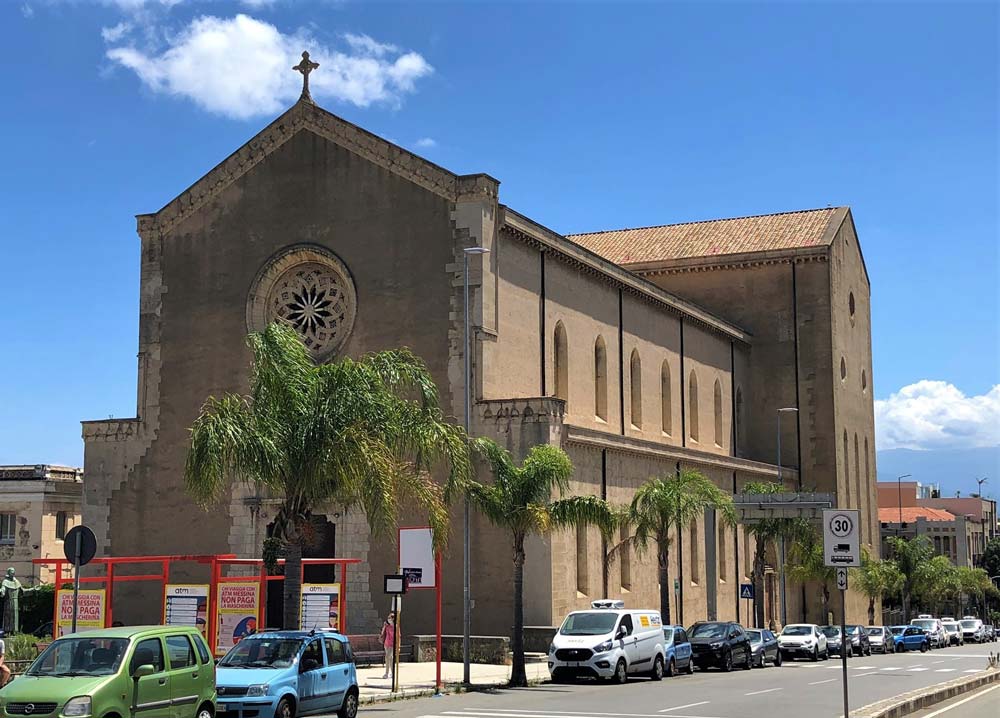 Fondata nel 1254 dalle patrizie messinesi Violante Palizzi, Eleonora da Procida e Beatrice Belfiore, nonostante sia di notevoli dimensioni, la chiesa si compone di un’unica aula rettangolare, senza divisione in navate, con pianta basilicale a croce latina, transetto ed absidi terminali. La copertura dell’imponente navata, nello spirito del gotico italiano, è a due falde con struttura composta da grandi capriate lignee a vista, che sostituiscono le volte lapidee del gotico francese e sottolineano magistralmente il carattere povero dell’architettura francescana. Conserva, oltre al pregevole simulacro in legno e argento dell’Immacolata (sec. XVIII), una mattonella con le gocce di sangue di S. Antonio di Padova, che qui operò il primo miracolo della sua vita nel 1221.