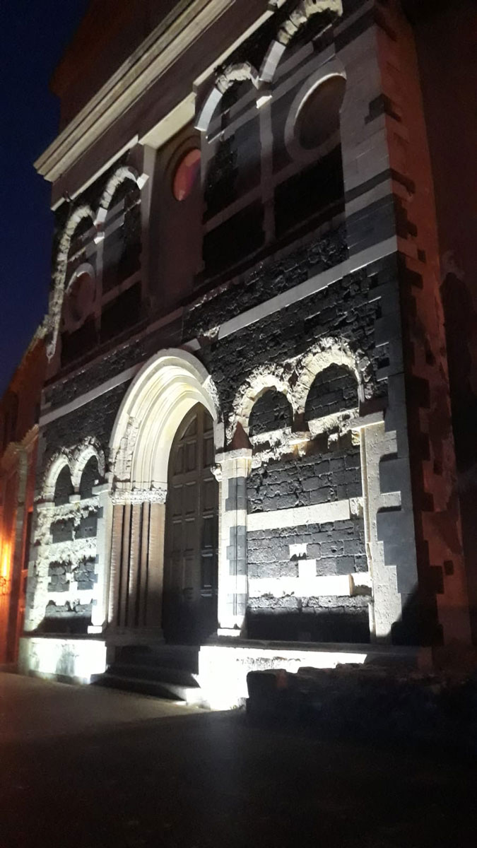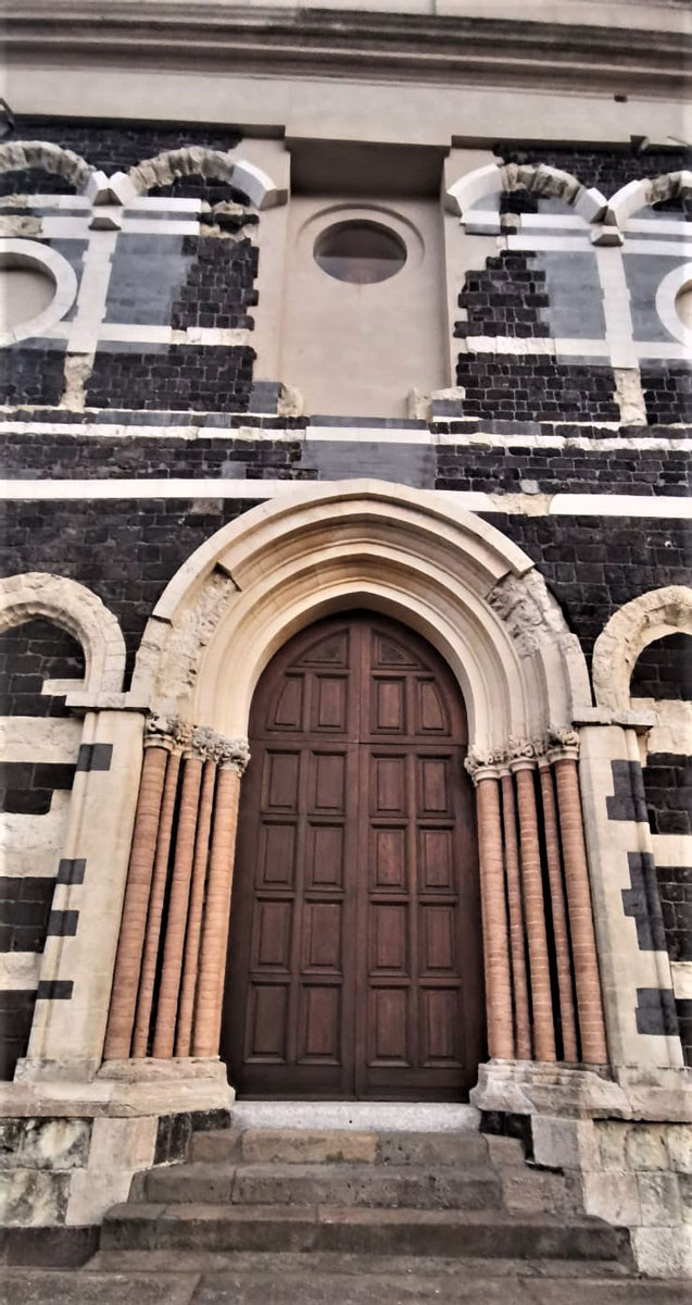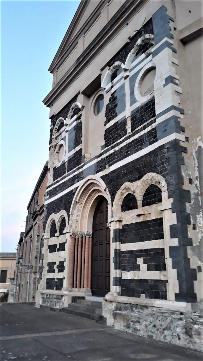 La Basilica Cattedrale di San Bartolomeo venne fondata il 6 marzo 1094 per volontà del Gran Conte Ruggero d’Altavilla, dopo che questi nel 1082-83 aveva fondato il monastero benedettino del SS. Salvatore, all’interno della cinta muraria adiacente il castello. Nel 1251 è documentata la sosta in Cattedrale della salma di Federico II di Svevia, morto in Puglia il 13 dicembre 1250, durante il viaggio di rientro, prima di essere seppellito a Palermo. Fu ricostruita dopo i gravi danni subiti nel terremoto della Val di Noto dell’11 gennaio 1693 mantenendo l’antica facciata. Il Campanile, alto 30 metri, fu realizzato nel 1588 e nella facciata svevo-federiciana (secoli XIII-XIV) a due ordini con decorazione lavica che insieme agli inserti di candido marmo delle cornici e del reticolo, creano un finissimo effetto cromatico, spicca il Portale in stile gotico con colonne che reggono capitelli con figure zoomorfe. L’ ingresso meridionale è costituito da un Portale del 1742 e all’interno, nella controfacciata, sono visibili gli antichi conci della struttura. Nella lunetta superiore spiccano un'aquila imperiale con stemma e stucchi festonati che ornano due ovali affrescati con figure di santi.