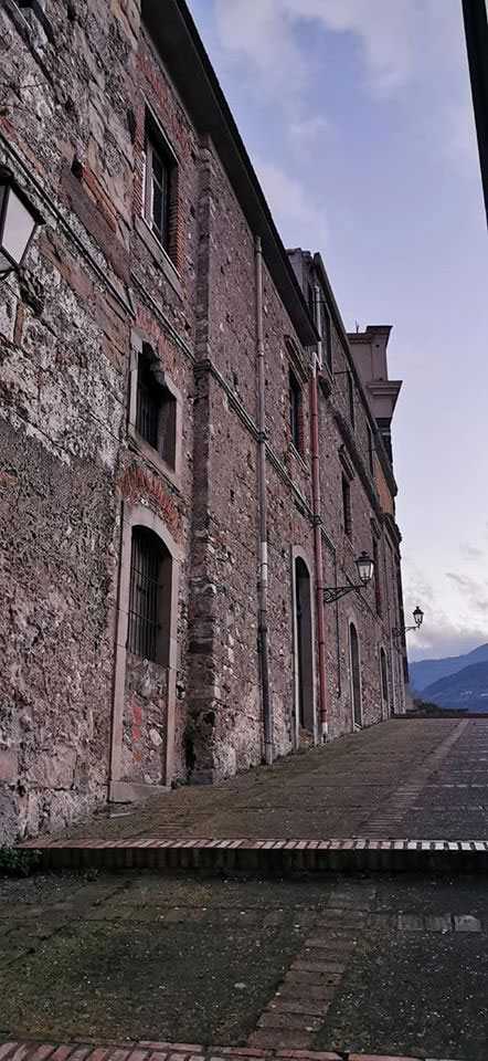 Svetta nel punto più alto del Borgo in posizione dominante sull’abitato, adiacente alle mura di fortificazione e a quanto resta del castello eretto nel XII secolo di cui si conserva, delle 17 torri, quella denominata "Torre del palombaro".