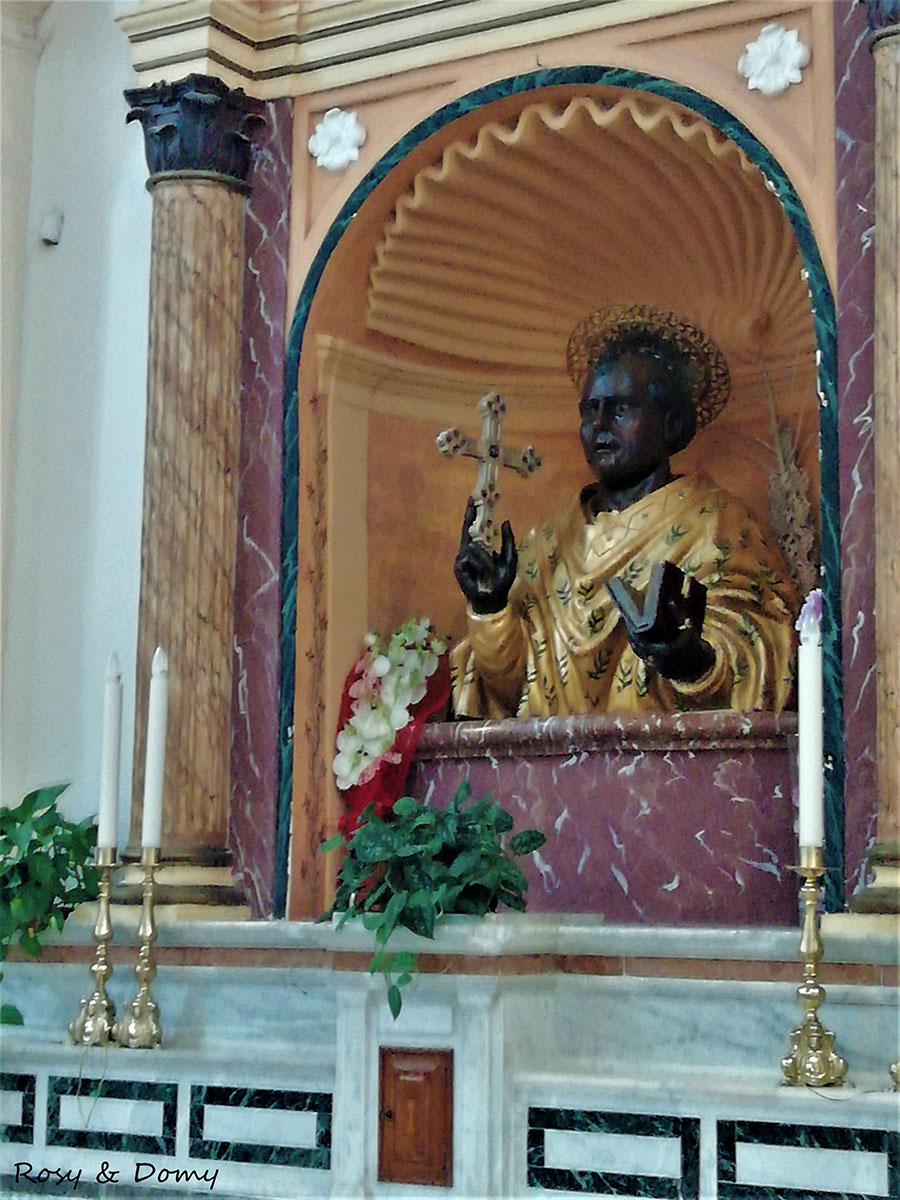 Accanto all’altare maggiore, a destra, si trova la copia del 1922 della statua lignea di San Cono Abate, caratterizzata dalla carnagione scura. Erroneamente si crede che l'aspetto della scultura riproduca le sembianze assunte da San Cono durante l’incursione turchesca nel 1545 in difesa di Naso: l’opera originale fu infatti realizzata nel 1512, 33 anni prima di questo episodio.