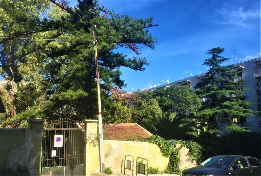 Sorge sulla sede stradale di via Brasile, un’arteria che collega il viale Regina Elena, a monte, col viale della Libertà, a mare. Oggi è una strada ma prima del sisma del 1908 era parte del lussureggiante giardino di Villa Laudamo.