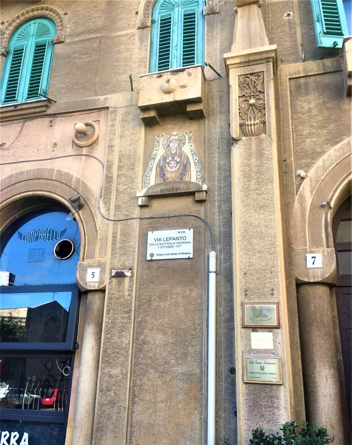 Nell’isolato 291 del Corso Cavour, sul prospetto ad angolo, è ubicata un’Edicola Votiva dedicata alla Madonna della Lettera (1928), in sostituzione di quella che andò distrutta durante il terremoto del 1908. Contiene un pregevole dipinto su tela, settecentesco. Ogni anno il 3 giugno, giorno della festa della Patrona, i proprietari dispongono l’apertura della cancellata e l’addobbo floreale.