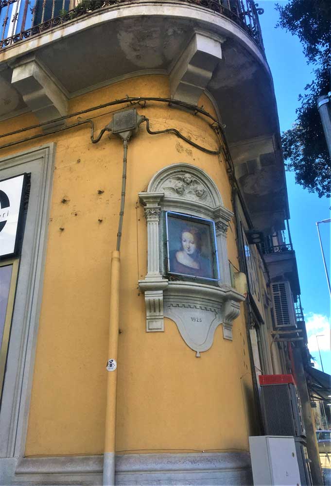 In una pregevole edicola a tempietto del 1928 con in sommità un timpano semicircolare con angeli, in Viale Boccetta angolo Via Francesco Bruno, è contenuta una cromolitografia che riproduce il volto della Madonna del cardellino (1505-6) di Raffaello Sanzio conservata agli Uffizi a Firenze
