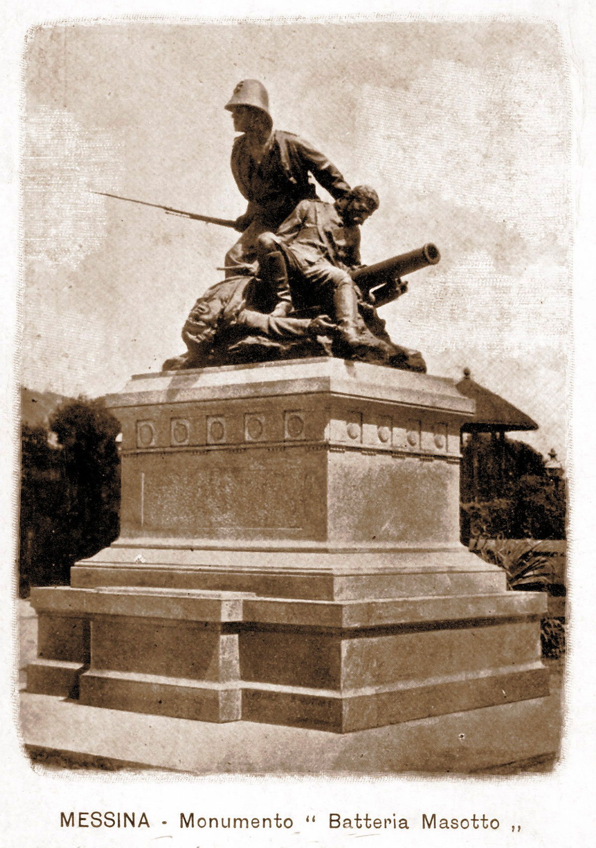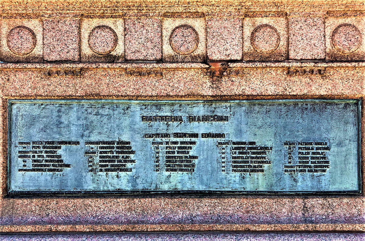 In un periodico romano del 30 settembre 1899, “Gran Mondo”, così è descritta la cerimonia di inaugurazione del Monumento alla “Batteria Masotto”, il 20 settembre 1899 alla presenza di S. A. R. il Duca d’Aosta: “Nel giardino pubblico si è inaugurato con gran solennità il monumento alle batterie siciliane, che si distinsero nella tristissima giornata di Adua [...] Si chiamavano “batterie siciliane” quelle comandate dai capitani Masotto e Bianchini, perché il veneto Masotto le aveva formate con soldati siciliani […] Fecero strage del nemico, ma allorché gli ascari impauriti dall’intrepida baldanza dei nemici, e sopraffatti dal numero stragrande si misero in fuga, i difensori delle batterie, rimasero soli e fermi resistettero alla fiumara invadente. Assediati da tutte le parti caddero l’un dopo l’altro travolti da quella marea infuocata che tutto devastava. I cannoni resi inservibili si precipitarono dai pochi superstiti nei burroni. Degli ufficiali si salvò il solo Pettini, mentre il maggiore De Rosa, i capitani Bianchini e Masotto, i tenenti Ainis, Saya, Cordella, Giarolini sacrificarono la propria vita.”.