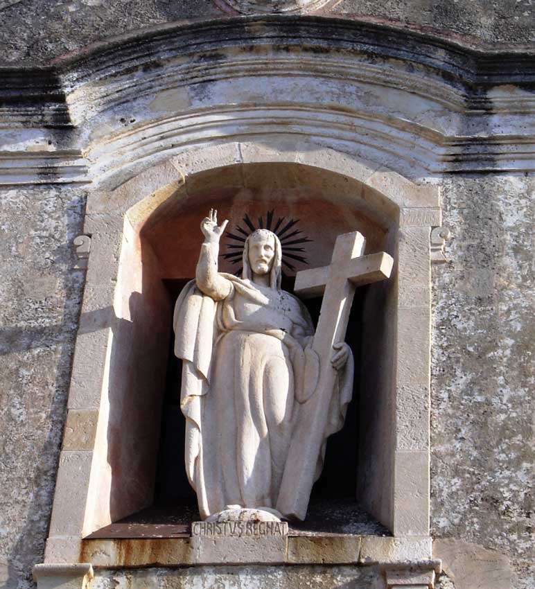 Affaccia sulla piazza IX Aprile al culmine di una scenografica scalinata a doppia rampa e venne edificata nel XVII - XVIII secolo a cura della Confraternita delle “Anime del Purgatorio”. Il Portale reca nell'edicola centrale un altorilievo con un teschio e le tibie incrociate sormontato da timpano curvo con sopra la rappresentazione della fiamma del fuoco purificatore. In alto, in una nicchia, la statua del Cristo Re benedicente. All’interno, ad unica navata, otto affreschi settecenteschi alle pareti con storie della vita di Gesù e dodici piccoli affreschi con altrettanti profeti e personaggi biblici. Una grande lastra marmorea intarsiata a pavimento con raffigurata una figura fra le fiamme, chiude l’ingresso alla cripta sotterranea.