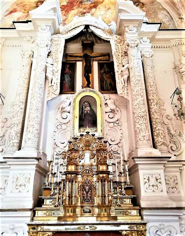 Ubicata in via Conte Ruggero, probabilmente venne edificata nel secolo XV dal momento che un altare minore ospitava un dittico (oggi al Museo Regionale di Messina) a tempera su tavola raffigurante la “Visitazione di Maria Vergine”, opera del pittore messinese Antonino Giuffrè della seconda metà del Quattrocento. La Chiesa è ad unica navata con altari in stucco lungo le pareti laterali. Fra le opere d’arte custodite, le statue di Santa Rosalia (sec. XVIII); Santa Maria Elisabetta (sec. XVIII); San Gaetano di Thiene (sec. XVII); San Francesco di Paola (sec. XVII). Sopra l’altare maggiore si trova un elegante tabernacolo di foggia barocca con in alto la statua della Madonna Addolorata e un Crocifisso. Sul catino absidale, l'affresco Trionfo della Croce del 1699 è opera di Vincenzo Tuccari e raffigura San Michele Arcangelo, crocifero, attorniato da angeli festanti. Sulla parete a destra dell’altare maggiore, la tomba del conte Giovanni Romano e Dente, morto l’11 agosto 1699, con la statua del nobile che patrocinò diversi ambienti della Chiesa.