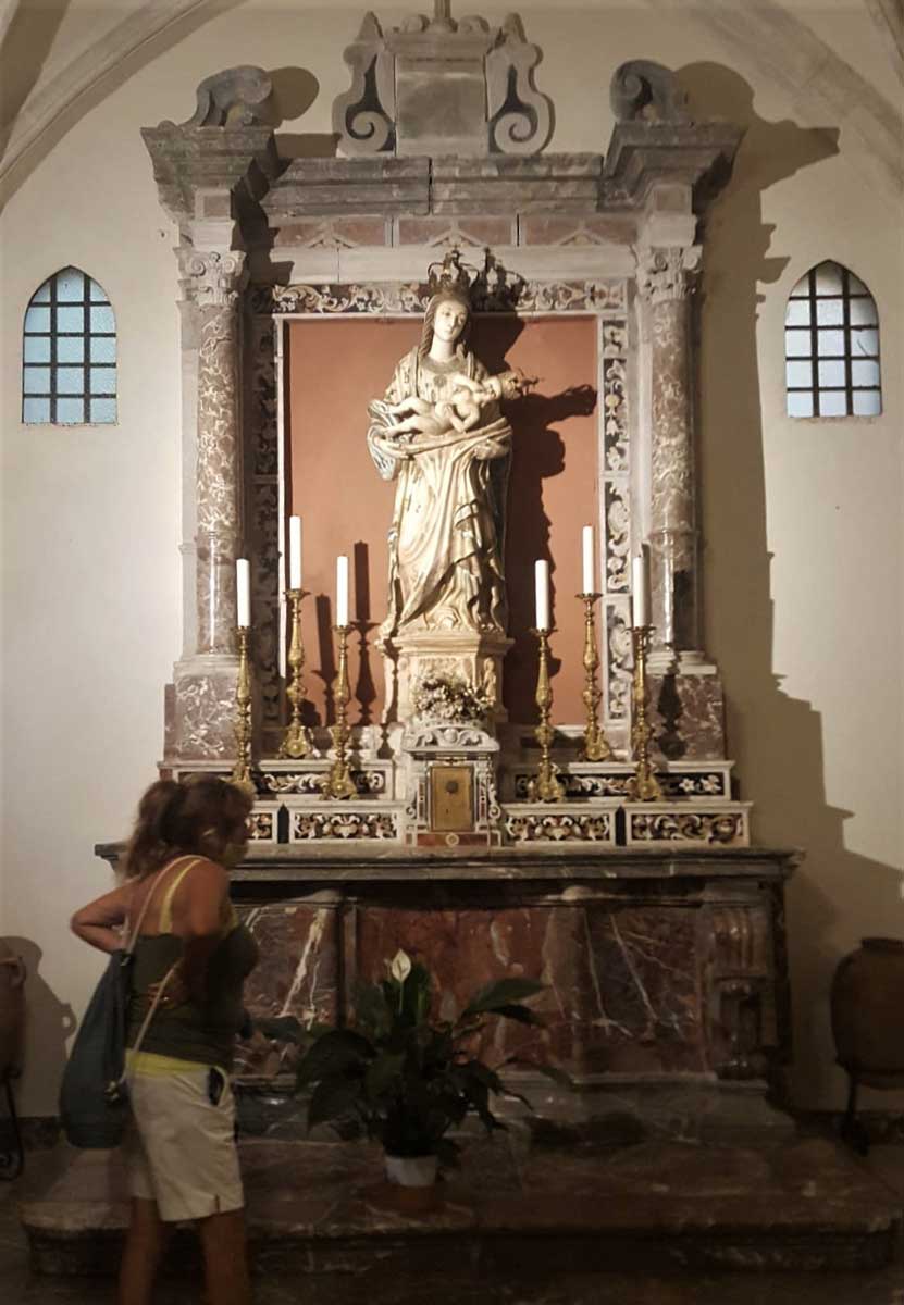 Si trova in via Pietro Rizzo, sotto il Palazzo Duchi di S. Stefano. Edificata nel sec. XV a ridosso della prima cinta muraria fortificata meridionale interna, subì gravi danni durante i bombardamenti del 9 luglio 1943. La sua riedificazione avvenne a partire dalla seconda metà degli anni ’50 del Novecento. La chiesa aveva già subito pesanti modifiche nel ‘600 con l’inserimento di un portale con timpano triangolare e il rifacimento totale dell’interno ad unica navata. Degli elementi originari quattrocenteschi si conservano solo un portale laterale architravato con mensole raffrontate, semicoperto dalla sede stradale di via Pietro Rizzo; quattro mensoline di sostegno a due colonnine nella parte alta della torre campanaria, con la medesima tipologia di quelle della chiesa di Sant’Antonio Abate e la finestra con mensole angolari sagomate, tamponata per ricavare, in nicchia, un altare dov’è oggi sistemato un gruppo scultoreo della Madonna del Rosario con San Domenico.