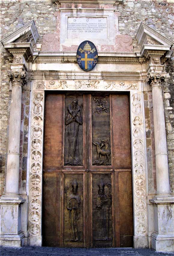 Dedicato a San Nicolò di Bari, fu edificato nel 1479 con l’aspetto massiccio delle cattedrali-fortezze dell’età feudale come le Cattedrali di Messina e di Catania e l’Abbazia dei SS. Pietro e Paolo d’Agrò. Restaurata e abbellita nel 1519, il Portale maggiore è affiancato da due monofore del sec. XV ad arco ogivale e in alto si trova uno dei tre rosoni in pietra di Siracusa, tipico dell'arte rinascimentale. Il Portale maggiore fu rimodulato nel 1636 per decisione dei Giurati, come risulta dall’epigrafe nella targa marmorea in alto. All’interno della cornice esterna seicentesca, è inserito l’antico portale marmoreo del XV secolo di scuola gaginesca con scolpite 11 figure per lato: in alto sono raffigurati a figura intera i due vescovi San Nicola di Bari e San Pancrazio di Taormina, nei medaglioni i busti rappresentanti San Paolo con la spada, San Pietro con le chiavi, re Davide con la cetra, i 4 evangelisti nei loro caratteristici simboli e, via via, i restanti apostoli e profeti. Il Portale laterale sul Corso Umberto è della seconda metà del XV secolo, di scuola gaginesca, interamente bordato di nera lava. Il Portale laterale opposto è della prima metà del XVI secolo. Custodisce all’interno, fra le altre opere, un dipinto con la Visitazione con S. Gregorio e S. Zaccaria, di Antonino Giuffrè (1457); un Polittico di Antonello de Saliba (1504); un dipinto raffigurante la Madonna col Bambino tra S. Giovanni e il profeta Elia di Alfonso Franco (XVI secolo); la statua di sant’Agata (XVI secolo), attribuita a Martino Montanini. Nella Cappella della Madonna delle Grazie, sulla mensa è collocata la statua raffigurante la Madonna delle Grazie della quale fu committente la famiglia Grugno originaria dalla Catalogna e giunta in Sicilia nel 1347, il cui stemma gentilizio raffigurante i “grugni” di tre teste di cinghiale si vede ai due lati alla base della statua. Il Duomo è stato elevato al rango di basilica Minore da Papa Giovanni Paolo II, il 6 febbraio 1980.