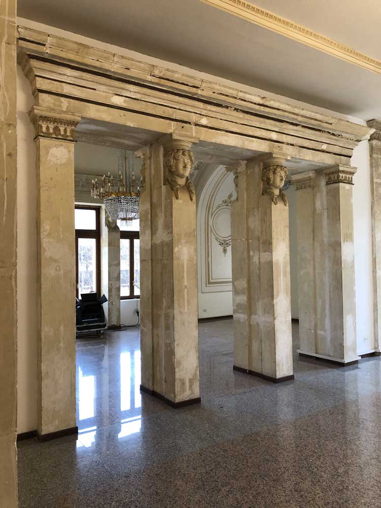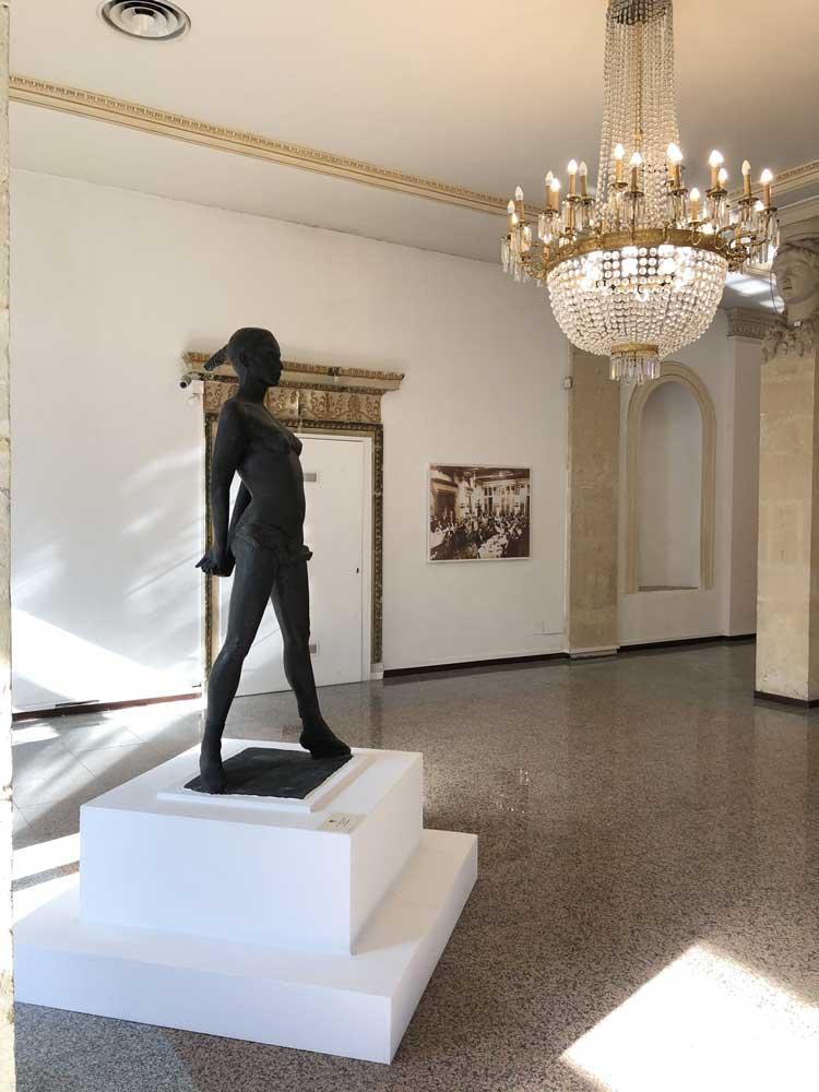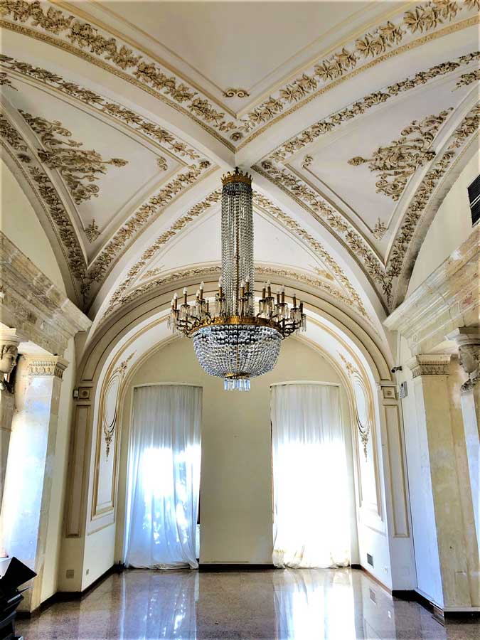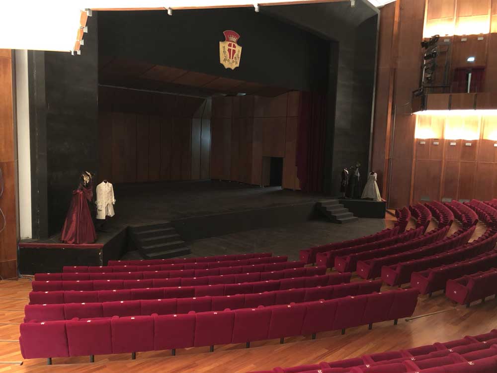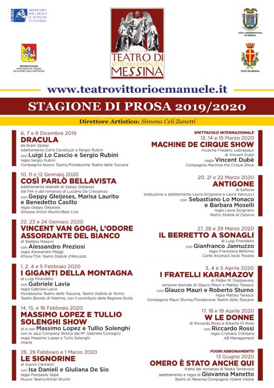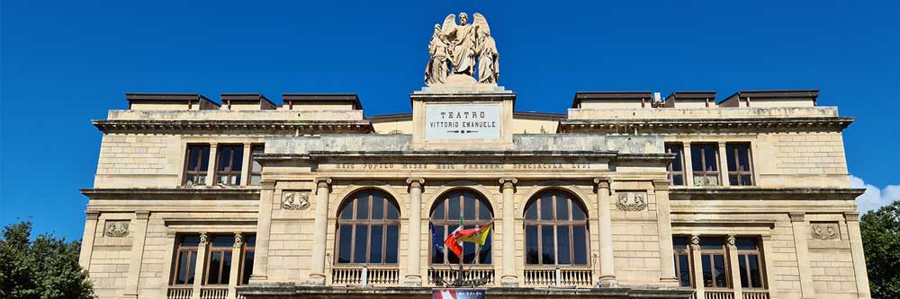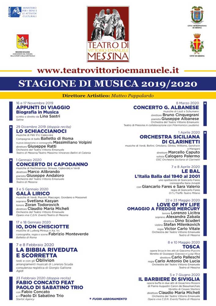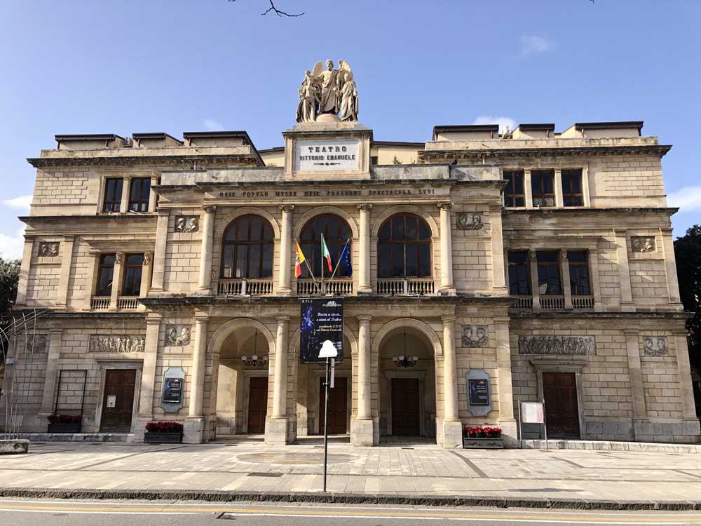 Il 12 gennaio 1852 il Teatro veniva inaugurato nel giorno del 42° compleanno di re Ferdinando II e, nel 1853, Saro Zagari, scultore messinese, riceveva l’incarico dal Municipio di realizzare un gruppo statuario da collocare sopra la facciata principale e diversi bassorilievi marmorei per decorazione esterna. L’edificio si ispira all’architettura neoclassica e il prospetto, in conci di pietra calcarea, si articola in un corpo centrale e due laterali ornati da bassorilievi. La parte centrale, su due ordini, presenta un portico a tre arcate sormontato da un loggiato ed è scandita da colonne. Arricchiscono l’austero prospetto otto medaglioni con le effigi di illustri musicisti e drammaturghi e due targhe marmoree in altorilievo raffiguranti “Ercole mentre sceglie la virtù e respinge il vizio” ed “Ercole che sposa Ebe” e il gruppo marmoreo raffigurante “Il Tempo che scopre la Verità e Messina che incantata dalla luce di essa, tende ad abbracciarla”, tutte opere dello scultore Saro Zagari realizzate a Roma nel 1857 e 1864. Gli ambienti di rappresentanza erano decorati a stucco da Placido Di Bella mentre i dipinti del soffitto, in scomparti trapezoidali, furono eseguiti da Giacomo Conti.