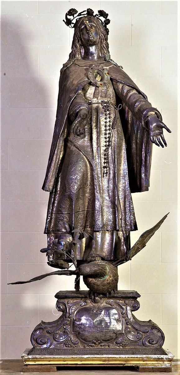 In fondo alla sala, è esposto un corredo d’altare. Nelle vetrine laterali, croci in corallo rosso e rame dorato di diverse misure (sec. XVII) e un ostensorio (1724). Fra le altre opere, una statua reliquiaria raffigura Santa Rosalia in argento sbalzato e cesellato, donata dal Senato Palermitano nel 1673. In seguito al dono, Santa Rosalia fu dichiarata co-patrona di Messina con voto del 14 aprile 1673.