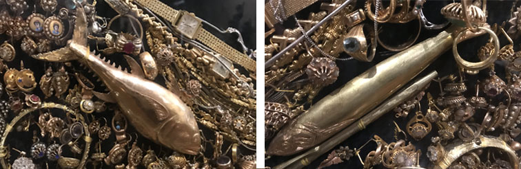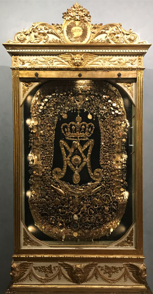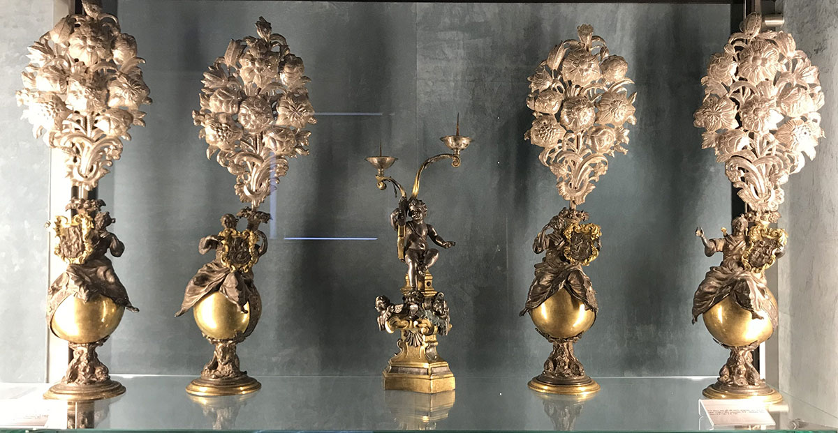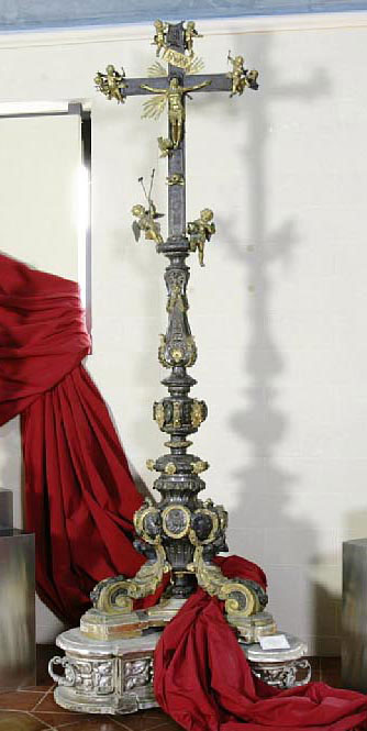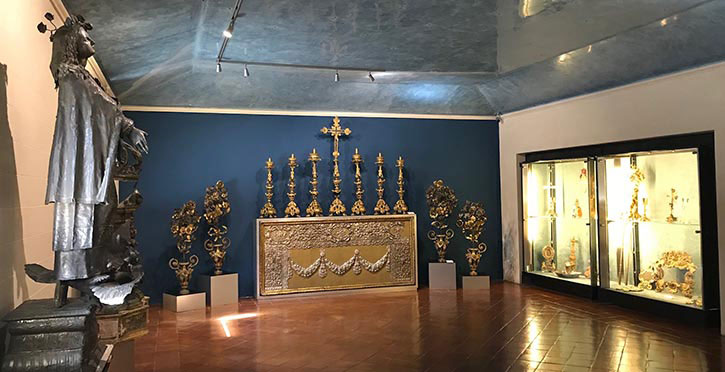 Al centro della parete laterale è una croce d’altare in argento fuso e cesellato (1711). Fra le altre opere, di particolare interesse sono gli ori votivi della Madonna delle Grazie. In fondo alla sala si conservano frammenti dei due lampadari del 1837 e quello donato nel 1847 da Re Ferdinando II di Borbone, distrutti durante l’incendio a seguito dei bombardamenti della Seconda guerra mondiale.