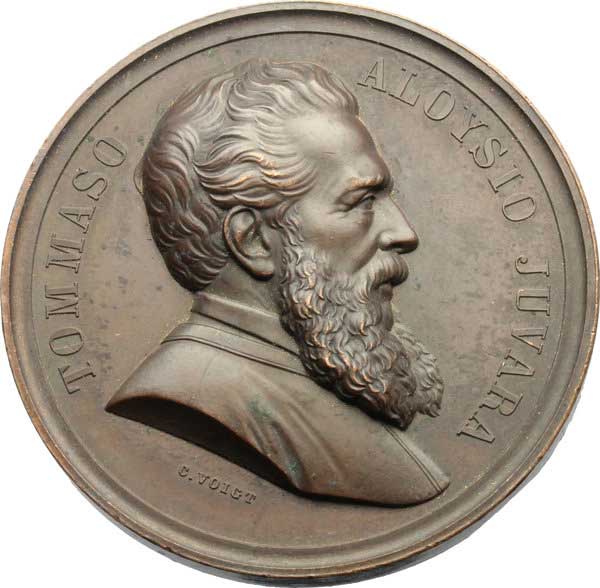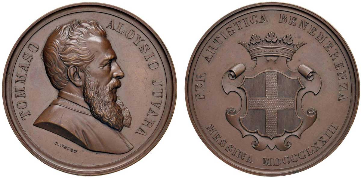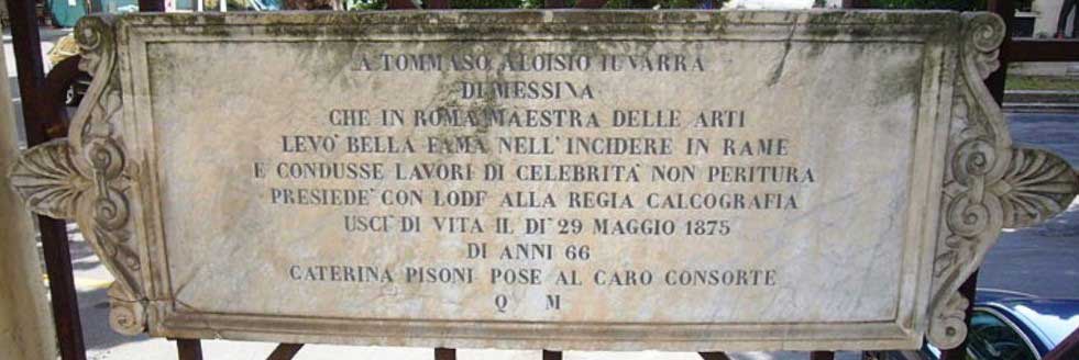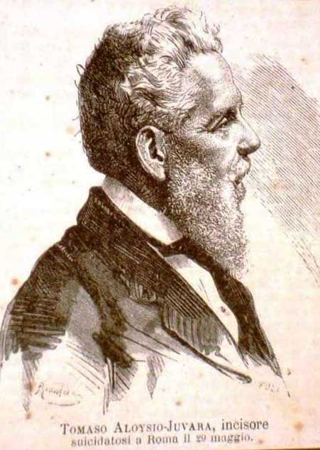 Nato a Messina il 12 gennaio 1809, per la sua precoce attitudine al disegno viene mandato dai genitori a lezione dal pittore Letterio Subba. Con un sussidio avuto dal Municipio parte poi per Roma, allievo del famoso disegnatore e pittore romano Vincenzo Camuccini. Si trasferisce quindi a Parma per frequentare la scuola dell’incisore Paolo Toschi, grazie ad un altro sussidio della sua città natale. Chiamato dal Municipio di Messina per assumere l’insegnamento dell’incisione presso la Scuola d’Arte, giunto all’apice della carriera e della gloria (nel 1869 era stato nominato condirettore della Regia Calcografia di Roma), è oggetto di invidie e critiche sfrenate da parte di un mediocre incisore romano, tale Ceroni. Egli ne soffre tanto e la salute e la sua mente ne sono fortemente scosse. La mattina del 30 maggio 1875 Tommaso si ritira nel suo studio e con precisi fendenti di rasoio si recide le arterie dei polsi e dei piedi. Dopo sei ore di atroce agonia sente i passi della moglie che sta rincasando. Afferra la rivoltella e preme il grilletto una volta sola: un colpo devastante alla bocca chiude per sempre l’esistenza terrena del celebre e grande incisore messinese Tommaso Aloysio Juvara.